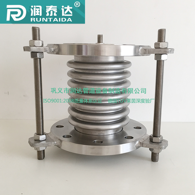 波紋膨脹節(jié)是用金屬波紋管制成的一種膨脹節(jié)。它能沿管道軸線方向伸縮,也允許少量彎曲。常見的軸向式波紋管膨脹節(jié),用在管道上進(jìn)行軸向長度補(bǔ)償。為了防止超過允許的補(bǔ)償量,在波紋管兩端設(shè)置有保護(hù)拉桿或保護(hù)環(huán),在與它連接的兩端管道上設(shè)置導(dǎo)向支架。另外還有轉(zhuǎn)角式和橫向式膨脹節(jié),可用來補(bǔ)償管道的轉(zhuǎn)角變形和橫向變形。這類膨脹節(jié)的優(yōu)點(diǎn)是節(jié)省空間,節(jié)約材料,便于標(biāo)準(zhǔn)化和批量生產(chǎn),缺點(diǎn)是壽命較短。波紋管膨脹節(jié)一般用于溫度和壓力不很高、長度較短的管道上。隨著波紋管生產(chǎn)技術(shù)水平的提高,這類膨脹節(jié)的應(yīng)用范圍正在擴(kuò)大。目前,波紋管膨脹節(jié)可用在*高壓力6.0兆帕的管系中。